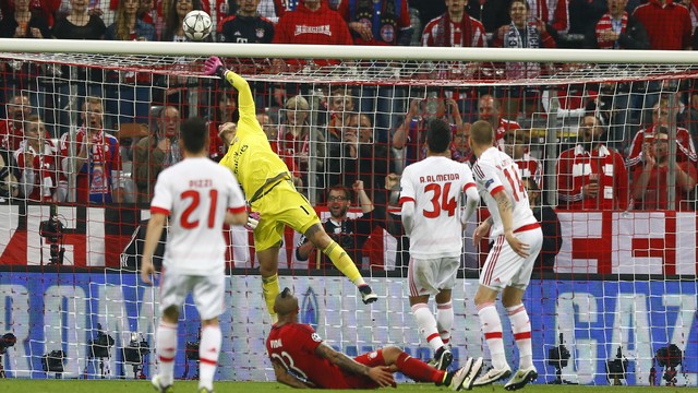 O Bayern arrancou o grito da torcida logo no primeiro lance, mas acabou encarando adversário cascudo em Munique. A vitória por 1 a 0 do time de Pep Guardiola diante do Benfica foi marcada pela grande atuação defensiva dos portugueses e defesas importantes de Ederson. Vidal abriu o placar aos dois minutos do primeiro tempo, mas a facilidade inicial não foi a tônica do jogo. Os “Encarnados” se equilibraram defensivamente e se engraçaram no ataque, mas pararam no goleiro Neuer e na mão de Lahm dentro da área não observada pela arbitragem. As equipes decidem o futuro no jogo de volta, no Estádio da Luz, valendo vaga na semifinal da Liga dos Campeões. O sistema defensivo do Benfica merece destaque. Com linhas bem definidas e muita entrega, a equipe de Rui Vitória anulou grande número de jogadas do Bayern, que pressionou, mas teve dificuldades para chegar ao gol de Ederson. E quando chegou, o goleiro brasileiro foi gigante. Foram pelo menos três defesas, uma delas com o pé esquerdo em chute de Ribéry, que deixaram o Benfica vivo na disputa por uma vaga na semifinal da Liga dos Campeões.
