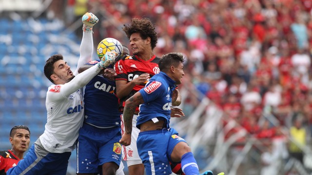 Ostentando 100% de aproveitamento em Cariacica no ano, o Flamengo começou o jogo justificando o retrospecto. Tomou conta do campo, trocou passes e empurrou o Cruzeiro para a defesa. O time mineiro tinha dificuldade para puxar contra-ataques e precisou segurar os avanços rubro-negros. Guerrero, com duas finalizações, uma delas de bicicleta, foi quem mais perigo levou ao gol de Rafael.