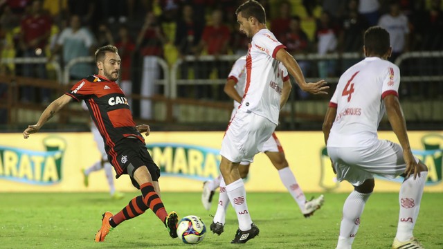 Com Renê na lateral, Paquetá no meio e Felipe Vizeu no ataque, o time de Zé Ricardo foi para dentro do Bangu. O Alvirrubro da zona oeste se defendia e pouco saía para o ataque. Loco Abreu só foi ameaçar no início do segundo tempo - ao colocar Bruno Luiz na cara do gol, mas o atacante perdeu a melhor chance da partida. Mancuello e Arão foram os que mais ameaçaram pelo Flamengo, que finalizou 15 vezes. O goleiro Márcio fez boa defesa em chute do volante.
