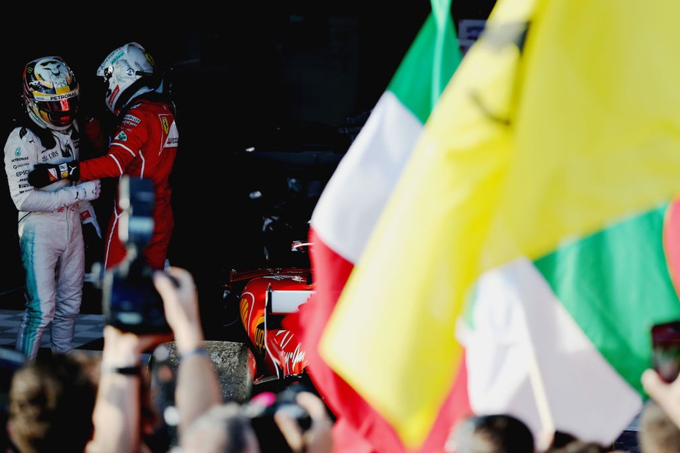 Essa combinação entre a Ferrari ser mais rápida que a Mercedes nas seis voltas em que Vettel teve pista livre pela frente, a partir do pit stop de Hamilton, na 17ª volta, e o fato de o piloto da Mercedes sair dos boxes atrás de Max Verstappen, da RBR, bem mais lento, foram decisivos para os italianos celebrarem a vitória.