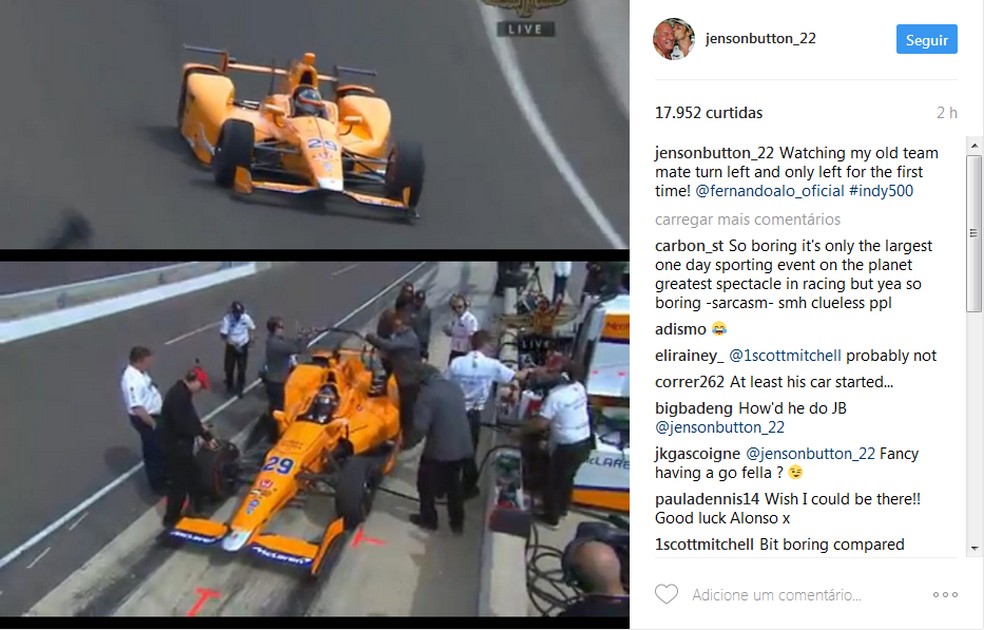 Button brinca com Alonso no Instagram (Foto: Reprodução)