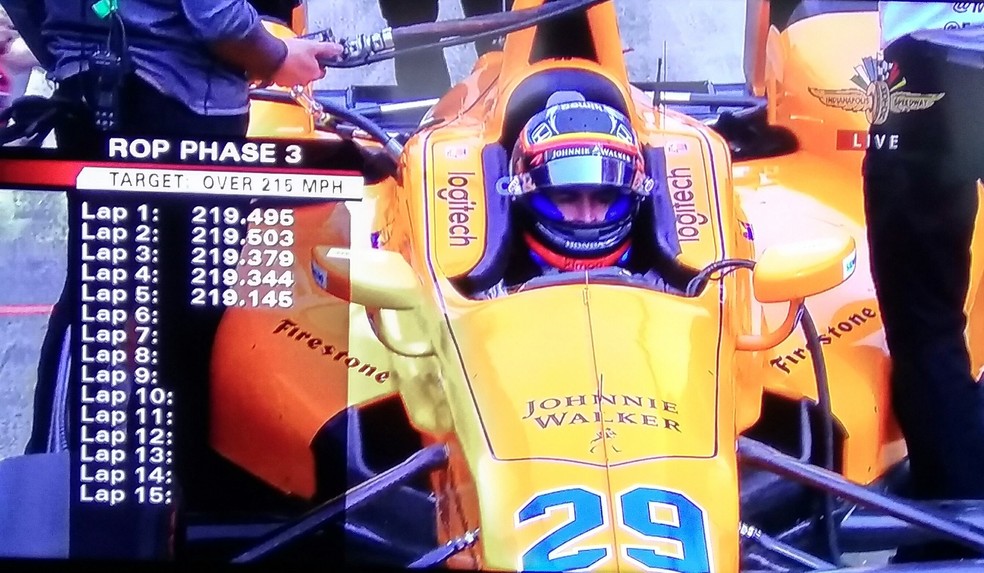 O ROP exige que o piloto complete 10 voltas entre 205-210mph (328 e 336km/h), 15 voltas entre 210-215mph (336 e 344km/h) e outras 15 voltas acima de 215mph (344km/h). A ação era para começar logo cedo pela manhã, mas o tempo frio impediu o início das atividades. Assim que as condições melhoraram, coube a Marco Andretti, filho de Michael Andretti e piloto do time de mesmo nome, completar algumas voltas de instalação e ajustar o carro para o espanhol, que assumiu o comando momentos depois.