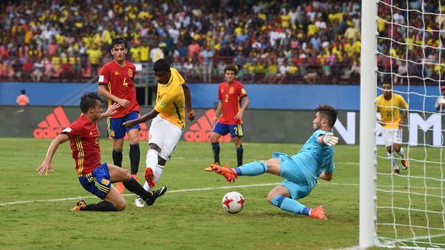 Uma grande defesa de Brazão logo aos 3 minutos e um gol contra de Wesley no lance seguinte. O início do Brasil no Mundial Sub-17 foi preocupante, mas o time não se desesperou diante da Espanha e foi buscar a virada. Lincoln, do Flamengo, deixou tudo igual, e o vascaíno Paulinho fez 2 a 1 nos acréscimos do primeiro tempo para garantir uma estreia com vitória para a seleção brasileira, contra o principal adversário da primeira fase.