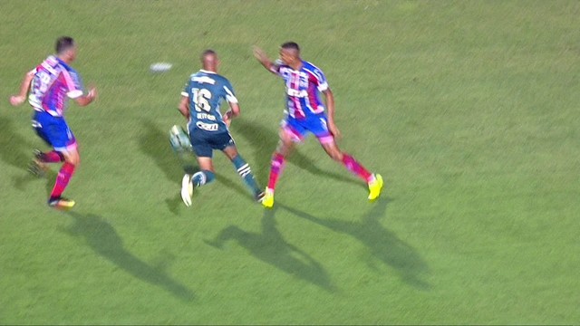 Aos 31 minutos do primeiro tempo, Dudu dominou uma bola alta na ponta direita e começou a fazer embaixadinhas, antes de tomar um chega-pra-lá de Renê Júnior – assista: