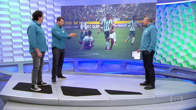 No lance do primeiro gol do Palmeiras, Dudu empurra Jonathan e tira o jogador do Atlético-GO da jogada. Willian, então, recebe de Keno e abre o placar. Houve reclamação por parte dos atletas do Dragão. Veja abaixo o que disse Leonardo Gaciba, comentarista de arbitragem da TV Globo.