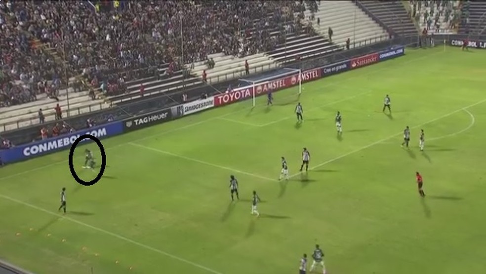 Marcação do Palmeiras logo antes do primeiro gol, marcado por Willian (Foto: Reprodução)