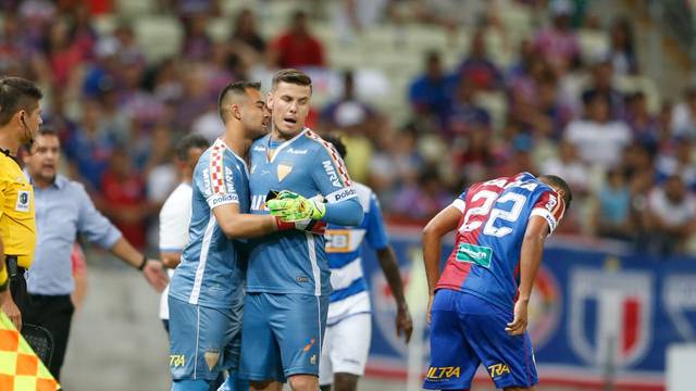 As equipes não iniciaram a primeira etapa com muito entusiasmo. Fechado na marcação, o São Bento buscava se defender com uma linha de cinco, e não arriscava muito. O Leão não conseguia avançar. A partir dos 15 minutos de partida, quando Marlon aproveitou um rebote para abrir o placar, o Fortaleza passou a criar mais chances de gol. As melhores chances do São Bento vieram da lateral direita e assim o time quase empatou, aos 20. Aos 25 minutos, Jussani aproveitou uma boa bola e mandou um chute direto para gol. E acertou. O São Bento buscou responder, diminuir a vantagem dos donos da casa. Aos 34, arriscou com Anderson Salles e quase marcou, mas Boeck fez uma grande defesa.