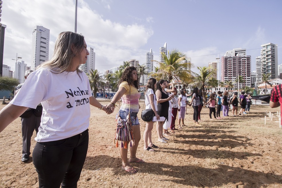 O ato, chamado "Amanhecer pela vida", lembrou dessas vítimas com cruzes instaladas no Aterro da Praia de Itacema. Segudo o Fórum de Mulheres Cearenses, aumento em 60% o número de mulheres mortas neste ano. Em 2017, foram 210 mulheres mortas.