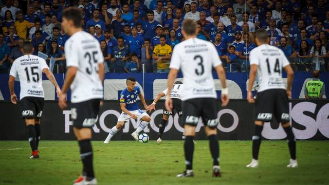 O Corinthians de Jair Ventura, mais uma vez, teve postura tímida fora de casa. Aceitou a pressão do Cruzeiro, viu Cássio fazer um milagre em cabeçada de Henrique e ainda teve uma bola na trave de Thiago Neves. O time teve apenas três finalizações – nenhuma delas na direção do gol do rival. O goleiro Fábio foi mero espectador em campo. Contra o Flamengo, na semifinal, o cenário foi quase o mesmo: nenhuma finalização certa no jogo de ida, mas um 0 a 0 no placar.
