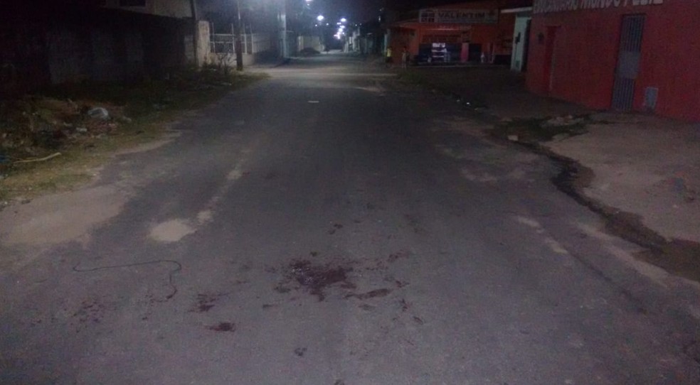 Ataque do Pit bull em Fortaleza. Marcas de sangue ficaram espalhadas no asfalto da Rua Francisco Domingos. — Foto: Ricardo Mota/TV Diário