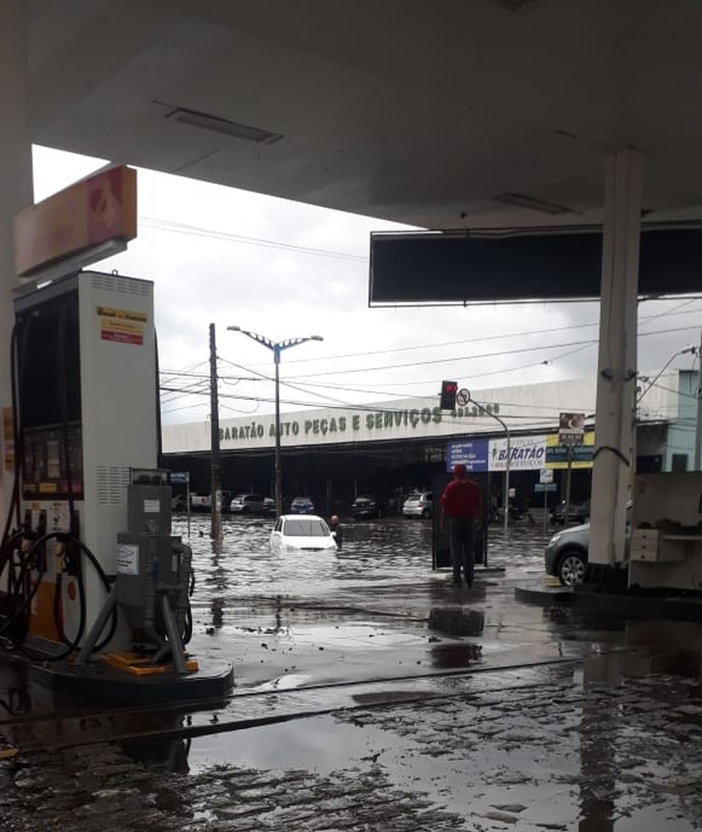 Avenida dos Expedicionários um veículo teve dificuldades de trafegar na via. — Foto: Reprodução/TV Verdes Mares
