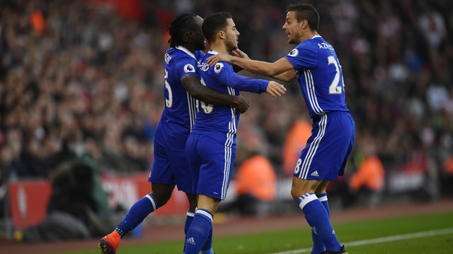 O momento é mesmo do Chelsea no Campeonato Inglês. Depois de ser muito contestado no início da competição, Antonio Conte parece ter encontrado o melhor esquema tático para a equipe e conseguiu emplacar a quarta vitória consecutiva, se mantendo na cola dos líderes. Desta vez, a vítima foi o Southampton, que não perdia em seus domínios desde fevereiro. Hazard tratou de abrir o placar logo aos 5 minutos, e Diego Costa marcou um golaço aos 10 do segundo tempo no triunfo por 2 a 0, sem dar espetáculo, mas também sem correr riscos. Com 22 pontos, os Blues seguem na quarta posição, apenas um atrás de Manchester City, Arsenal e Liverpool.