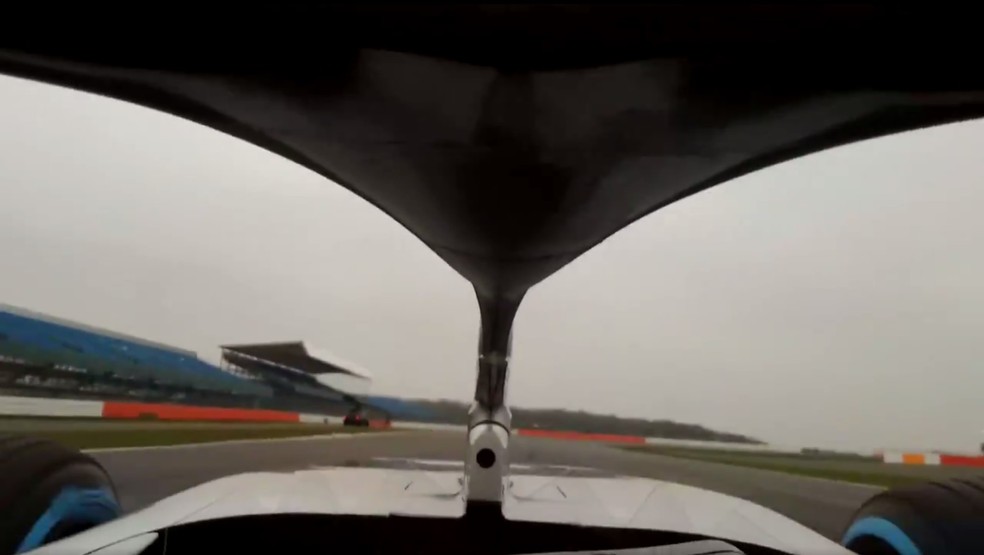 Halo no carro da Mercedes em imagem captada do capacete de Valtteri Bottas (Foto: Divulgação)