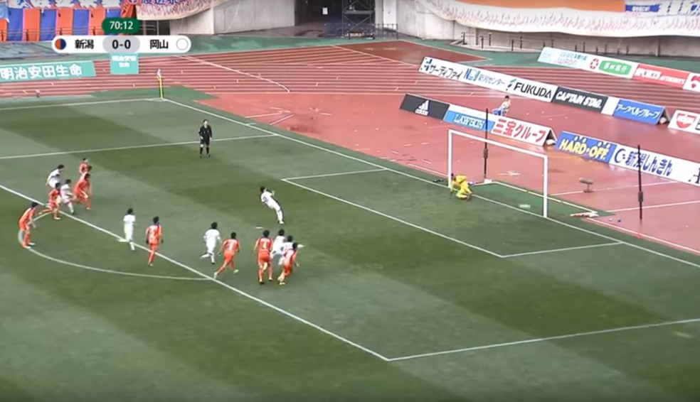 Alex Muralha pulou para o seu lado direito e levou gol (Foto: Reprodução / Youtute J-League)