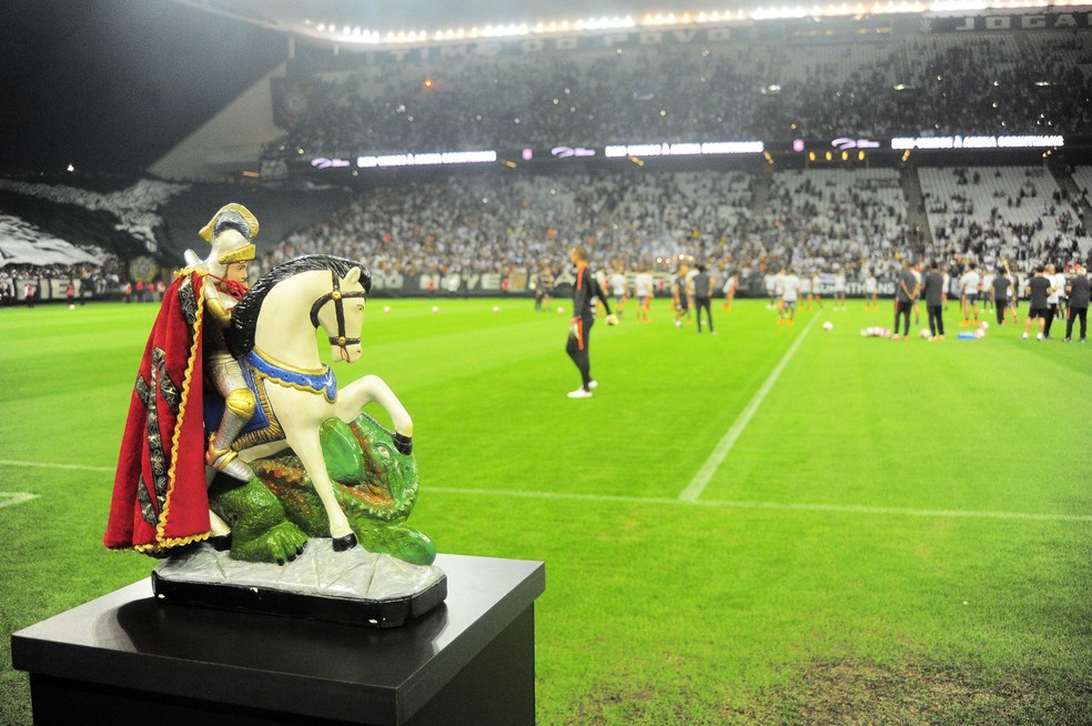 Imagem de São Jorge foi levada ao gramado (Foto: Marcos Ribolli)
