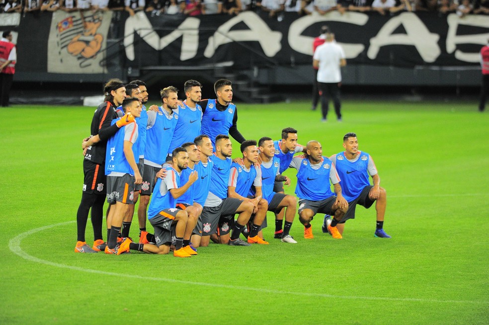 Em meio a muitos cânticos vindos das arquibancadas, a equipe com colete azul venceu o time sem colete no treino recreativo. Como prêmio, eles posaram para a foto oficial feita pelo fotógrafo do Timão, Daniel Augusto Júnior.