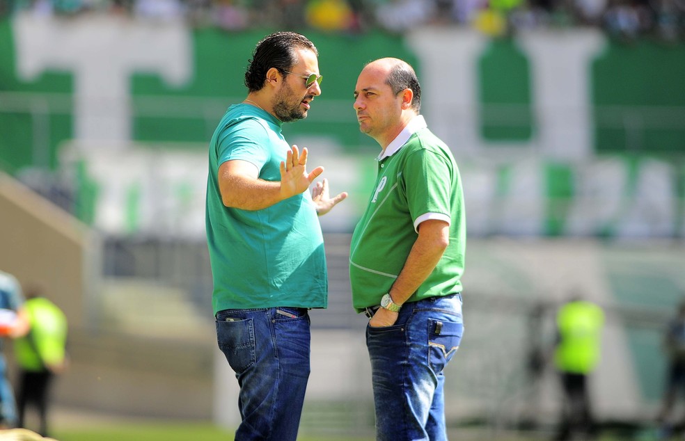 Os dirigentes Alexandre Mattos e Cícero Souza também ficaram no gramado (Foto: Marcos Ribolli)