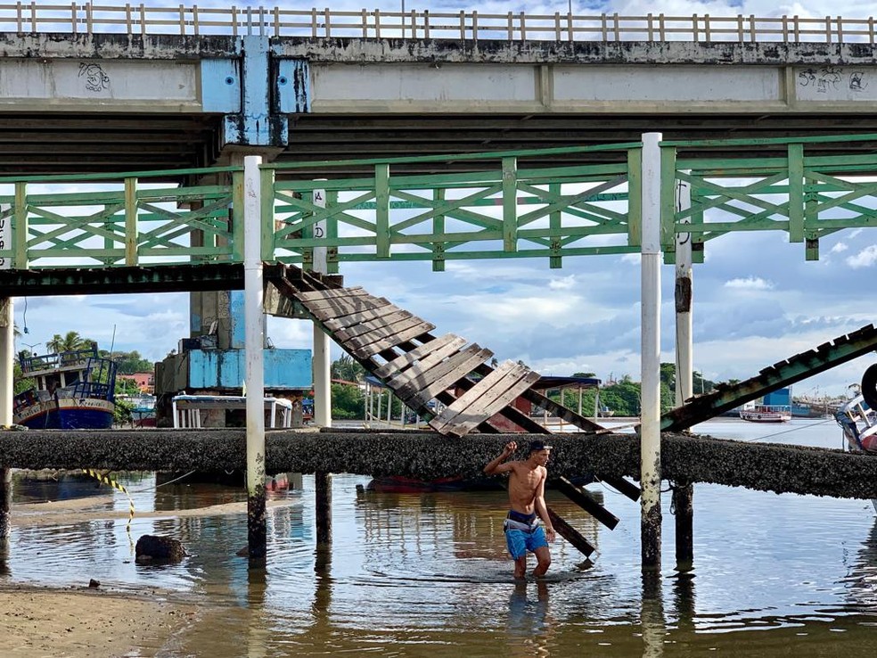 Após píer desabar, grupo caiu de altura de cerca de três metros — Foto: Wânyffer Monteiro/TV Verdes Mares