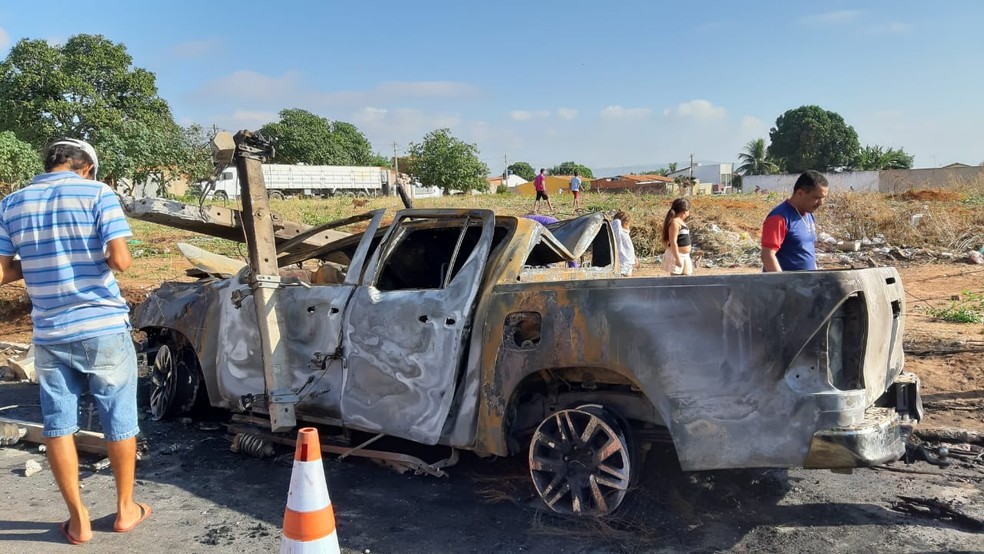 A caminhonete ficou destruída — Foto: Lorena Tavares/Sistema Verdes Mares