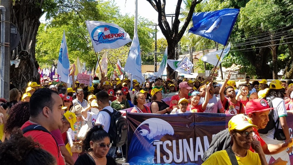 Manifestantes realizam protestos contra cortes de verbas para a Educação e reforma da Previdência na manhã desta terça-feira (13) em Fortaleza e cidades do interior do Ceará. Outros estados do país também registram manifestações.