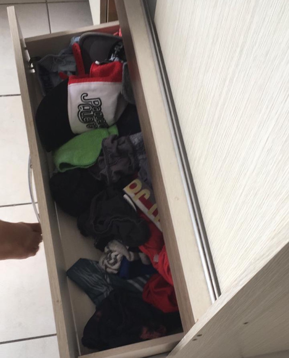Gavetas foram reviradas e objetos do apartamento danificados — Foto: Arquivo pessoal