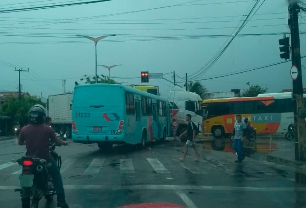 No Bairro Vila Velha, um ônibus que faz o transporte coletivo colidiu com um caminhão no cruzamento da Avenida Coronel de Carvalho com Rua Desembargador Hermes Parahyba. Não há informações sobre feridos.