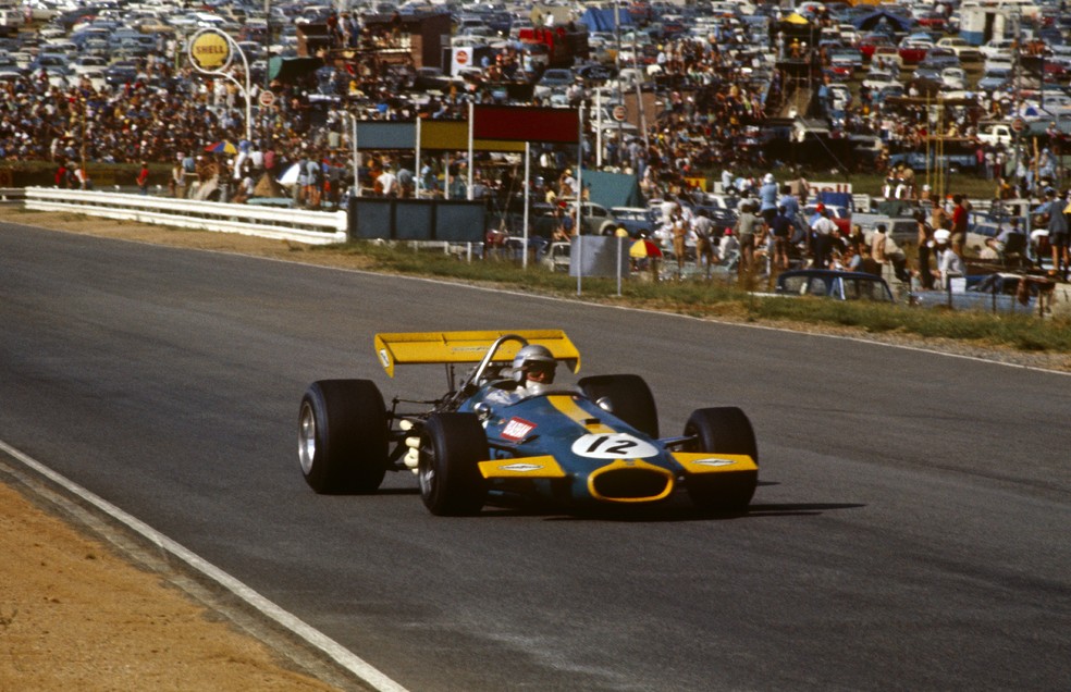 Jack Brabham acelera rumo à vitória em Kyalami, em 1970 — Foto: Getty Images
