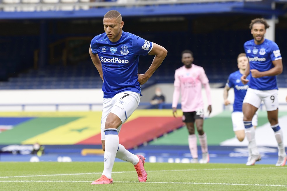 Richarlison abre o placar para o Everton contra o Leicester — Foto: Tony McArdle/Everton FC via Getty Images