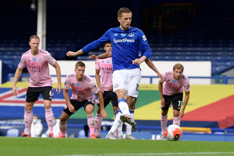 Sigurdsson marca o segundo gol do Everton sobre o Leicester — Foto: Tony McArdle/Everton FC via Getty Images