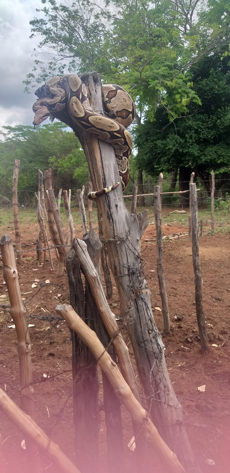 Um cobra da espécie Jiboia, conhecida popularmente como "cobra de veado", foi avistada num quintal de uma residência no município de Ipu-CE, região Noroeste do estado.